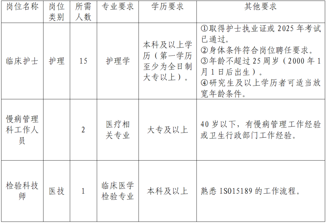 (一)報(bào)名。應(yīng)聘者需在2025年9月21日前將個人電子簡歷及應(yīng)聘所需佐證材料,包括但不限于畢業(yè)證(第一學(xué)歷和最高學(xué)歷)、學(xué)位證、執(zhí)業(yè)證(考試成績)、職稱證、進(jìn)修結(jié)業(yè)證、專科護(hù)士培訓(xùn)合格證、執(zhí)業(yè)資格考試成績單等打包發(fā)送至rsk7836669@163.com郵箱,報(bào)名材料以“姓名+專業(yè)+衛(wèi)技招聘”名字命名。
