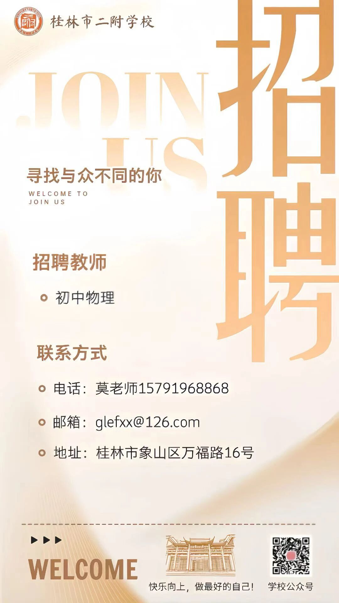 原文標題:桂林市二附學校教師招聘丨人才招聘