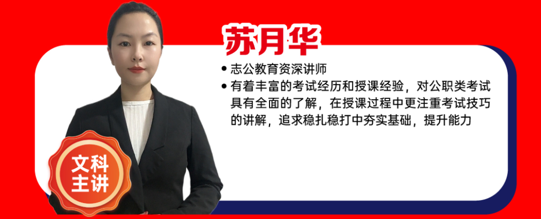 ?有著豐富的考試經(jīng)歷和授課經(jīng)驗(yàn),對公職類考試具有全面的了解,在授課過程中更注重考試技巧的講解,追求穩(wěn)扎穩(wěn)打中夯實(shí)基礎(chǔ),提升能力。