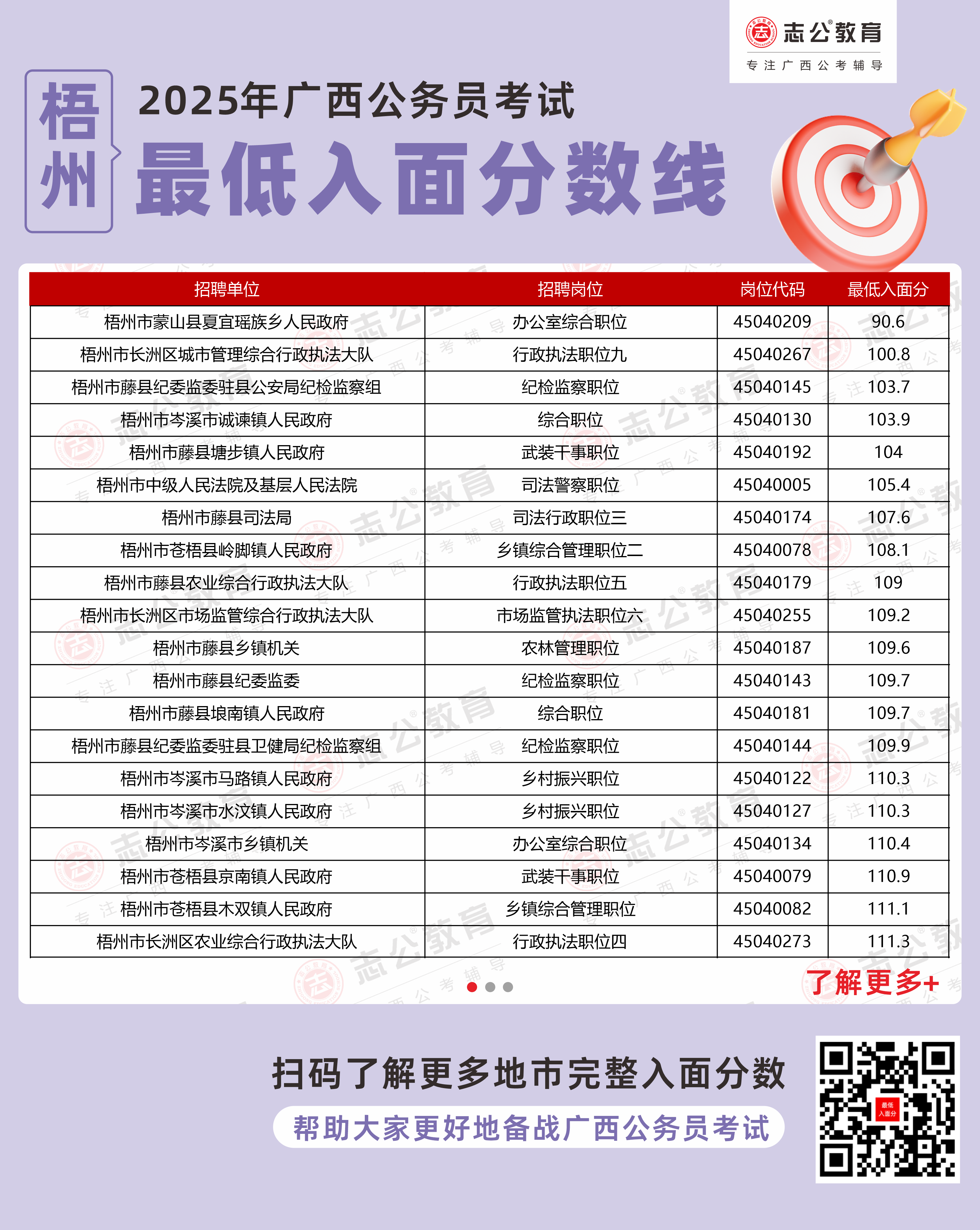 (點擊下載更多2025年梧州公務(wù)員最低入面分數(shù),數(shù)據(jù)整理自官方發(fā)布的面試資格審查公告)