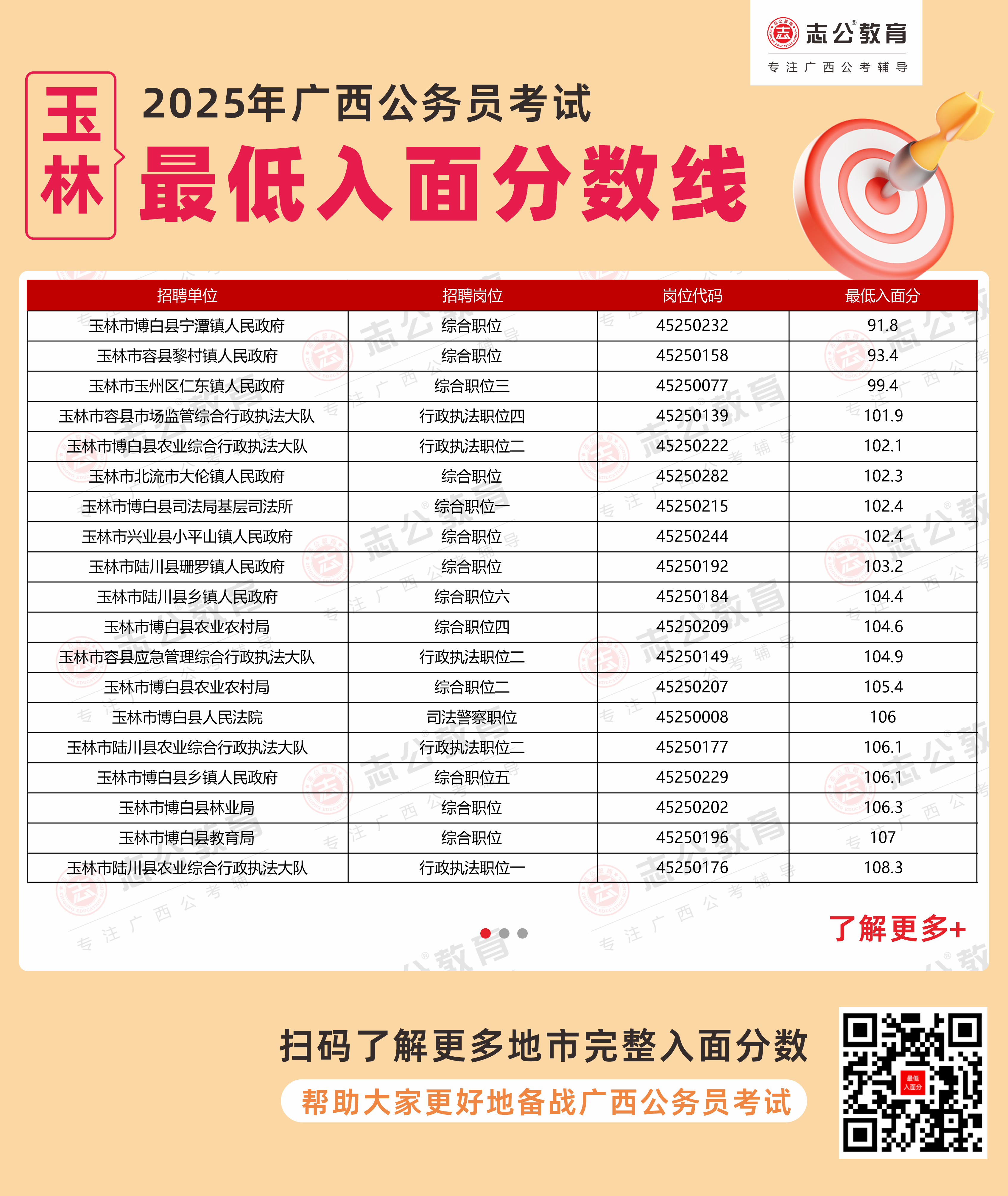 而縣鄉(xiāng)基層單位及部分定向招錄職位,如玉林市玉州區(qū)仁厚鎮(zhèn)人民政府綜合職位一最低進面分為120.6分,該職位面向農(nóng)業(yè)工程類、食品科學與工程類、農(nóng)林經(jīng)濟管理類專業(yè)招錄,因?qū)I(yè)限制等因素,分數(shù)線相對平穩(wěn),為符合條件的考生提供了更多選擇空間。