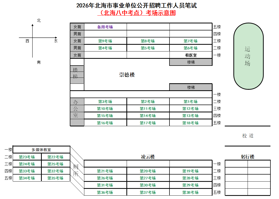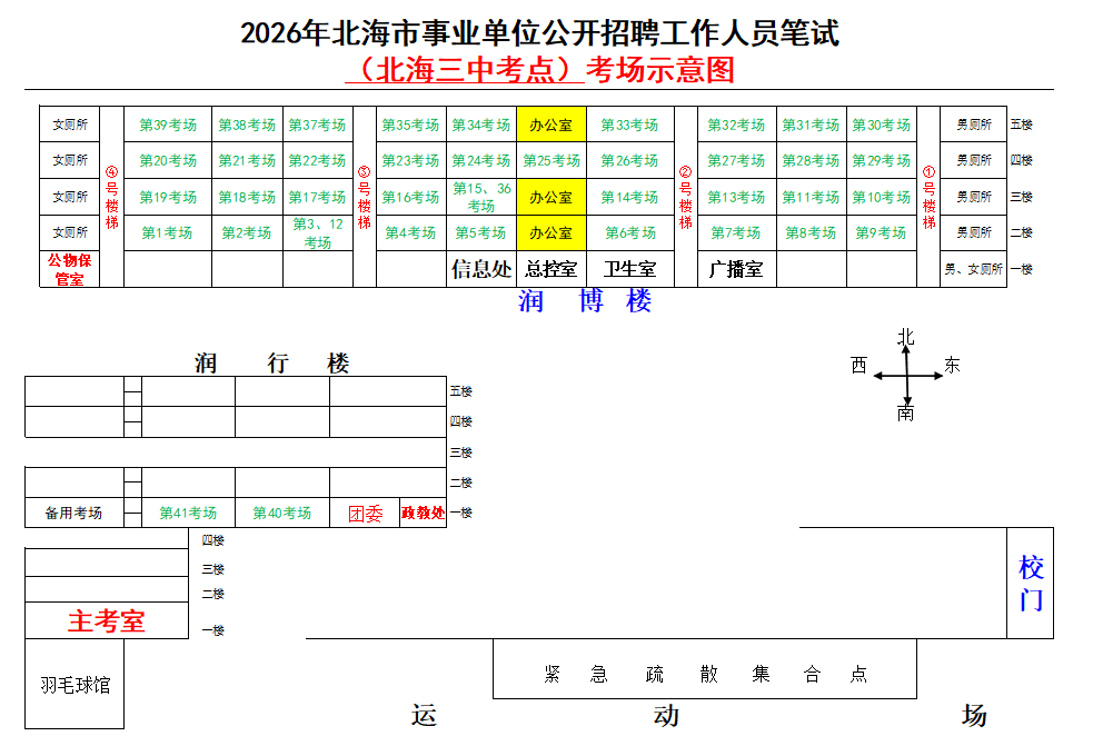 (一)3月28日進(jìn)行綜合管理類(A類)考試,北海市共設(shè)一個(gè)考點(diǎn),考點(diǎn)考場(chǎng)布置為: