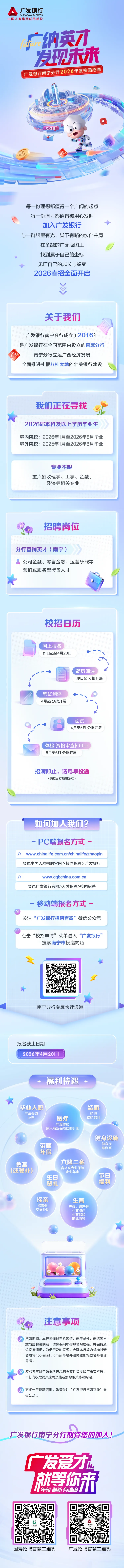 原文標題:廣發(fā)銀行南寧分行2026年度春季校園招聘公告