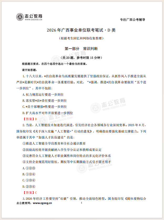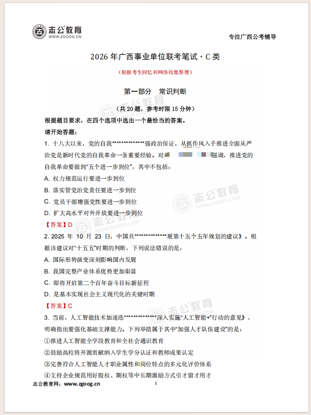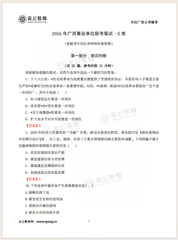 26廣西事筆ABCDE類科目均已筆試結(jié)束