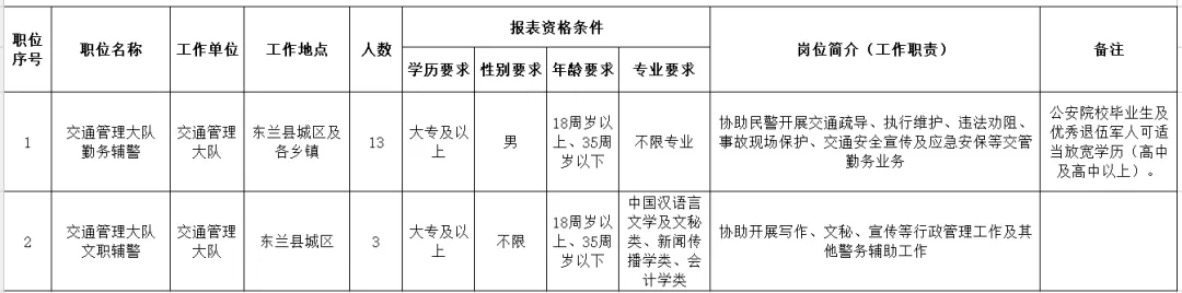 東蘭縣公安局本次擬招聘警務(wù)輔助人員16人,具體招聘崗位、人數(shù)、資格條件詳見《東蘭縣公安局2026年上半年公開招聘警務(wù)輔助人員崗位設(shè)置表》(附件1)